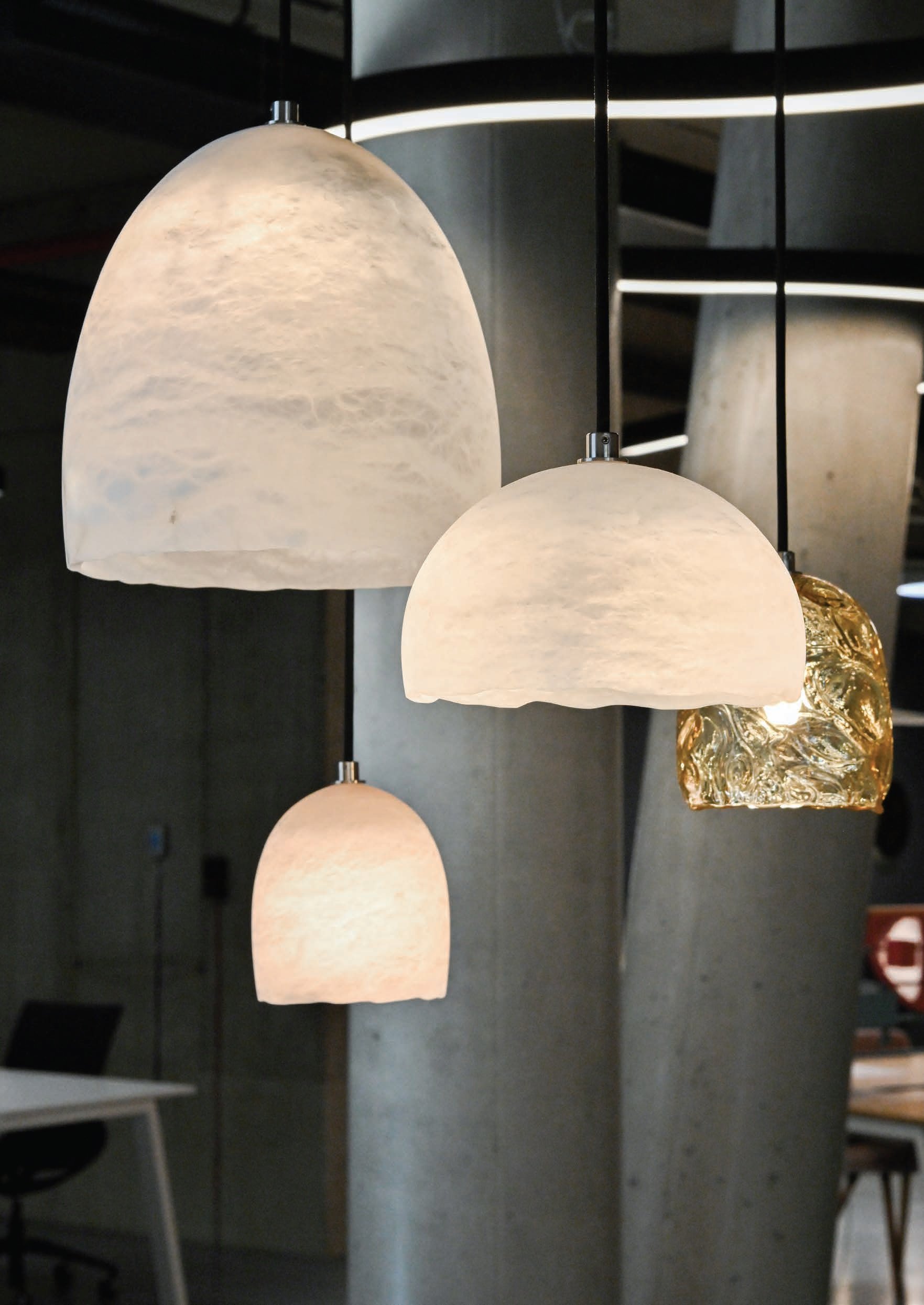 *I am Not Plastic Závěsné sv. pr. 250 x H 260 Broušená nerez Pravý bílý alabastr
